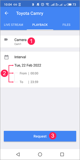 Sur cet onglet, vous pouvez demander et regarder des vidéos de la période écoulée (lectures) à partir des caméras de l’unité et enregistrer les fragments requis sous forme de fichiers.
