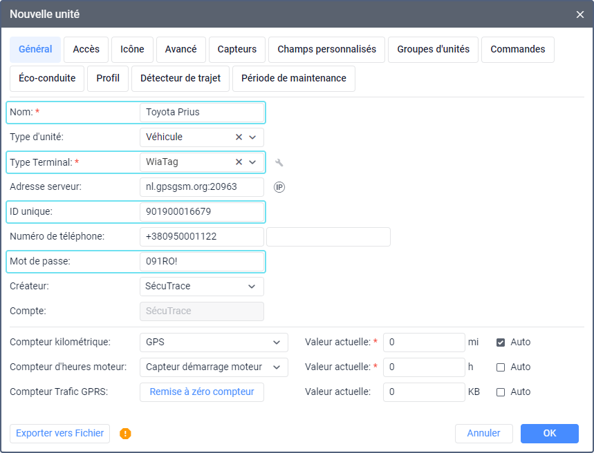 Création d’unité en Wialon