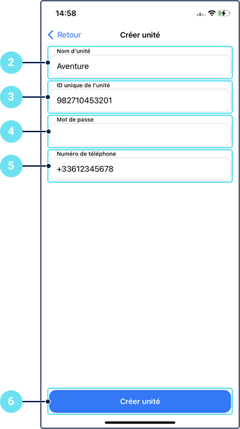 Pour créer une unité dans l’application, suivez les étapes suivantes :
