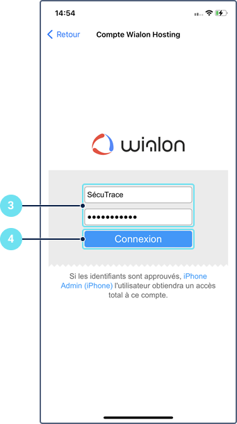 3. Saisissez le nom d’utilisateur et le mot de passe. Si vous avez sélectionné Wialon Local à la première étape, indiquez d’abord l’adresse du serveur.