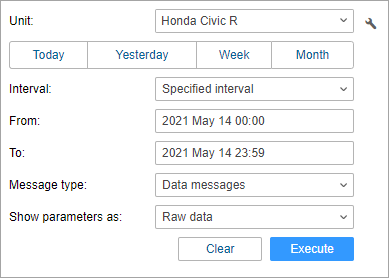- Specify the time interval, that is, the period for which you want to display messages. The principle of selecting the time interval is the same as in the reports.
