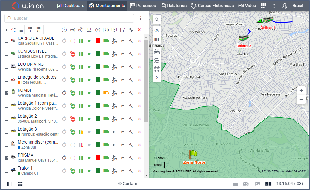 - geração de relatórios (tabelas, gráficos, trilhas no mapa) baseados nas informações recebidas das unidades e mais.