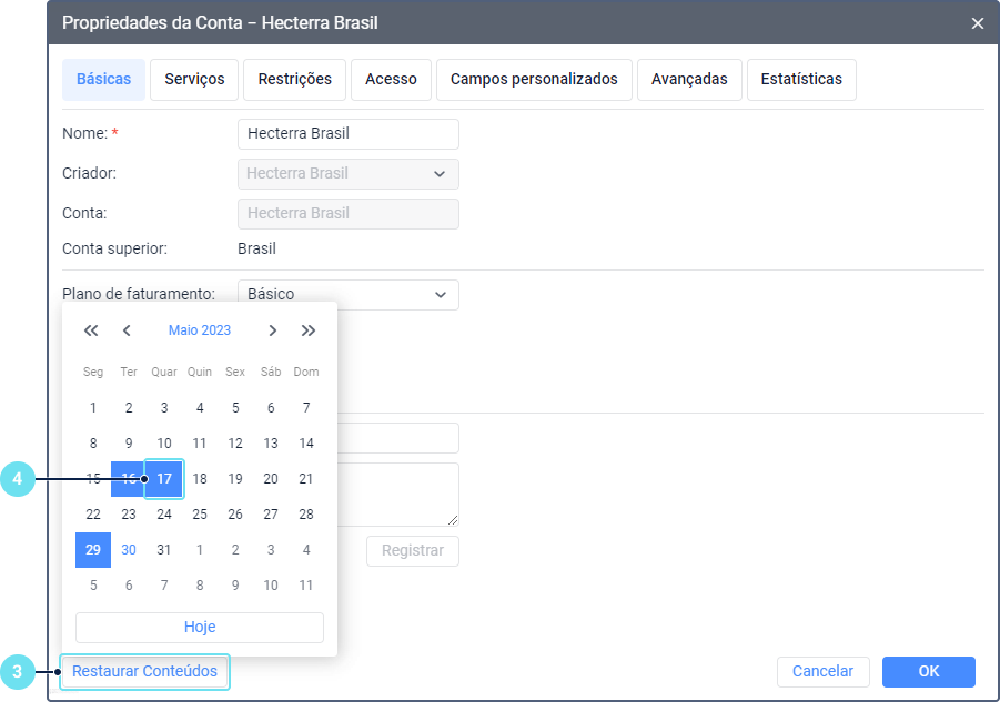 Não é possível restaurar conteúdos que foram criados e excluídos no mesmo dia porque o backup automático é feito uma vez por dia.