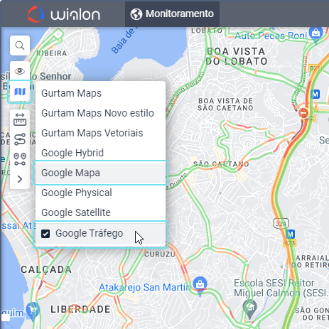 No canto superior esquerdo do mapa no sistema de monitoramento, clique no botão
