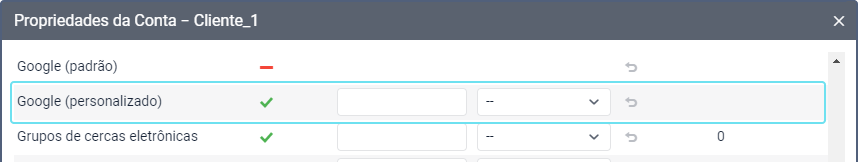 Google (personalizado), se você mesmo comprou a chave ouGoogle (padrão), se você comprou a chave pela Gurtam;