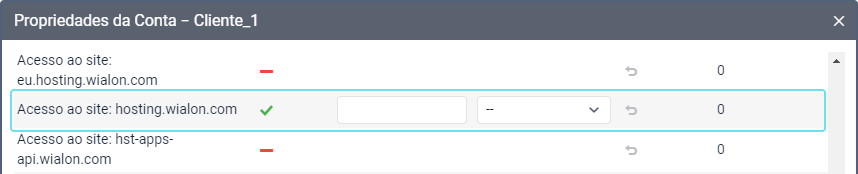 Certifique-se de que apenas os serviços de acesso aos sites desejados estejam habilitados nas propriedades da conta (serviços denominados Acesso ao site: …).