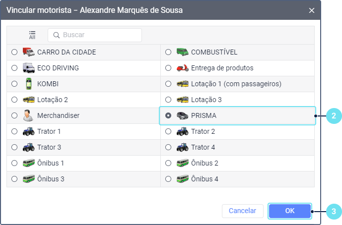 Para vincular manualmente um motorista a uma unidade, siga estas etapas:
