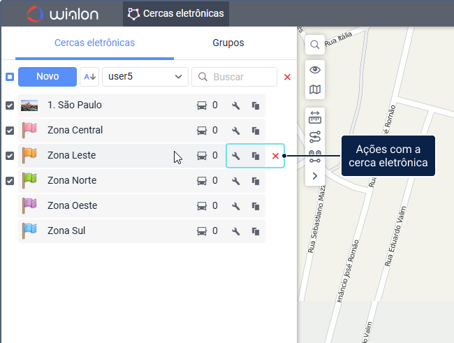 - executar ações da lista de сercas eletrônicas: editar, copiar, excluir;