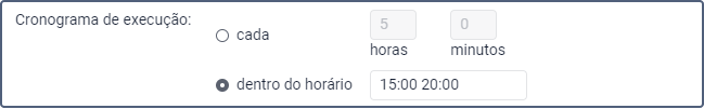 Cronograma de execução* | O horário de acordo com o qual a tarefa deve ser realizada. Para especificar o horário, use uma das opções: