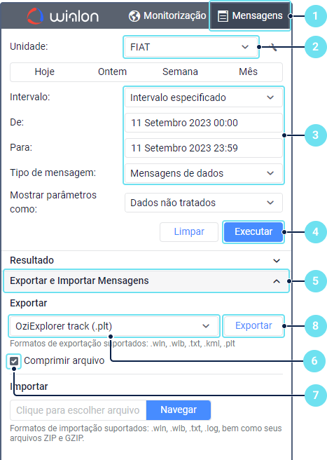 - Wialon messages: pesquise arquivos com extensão .wln.