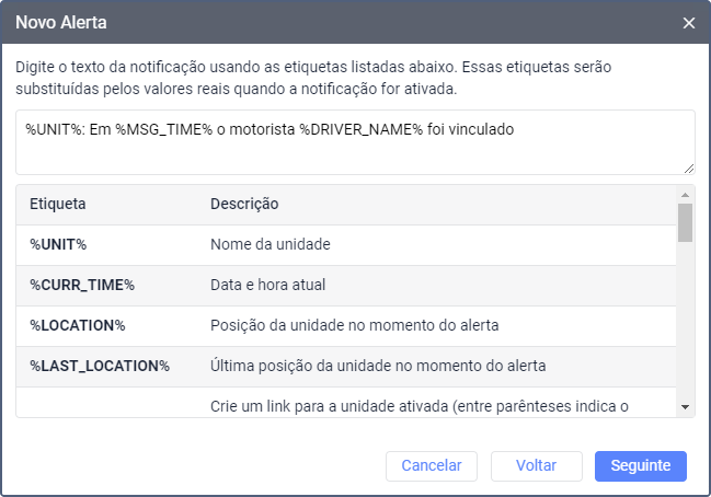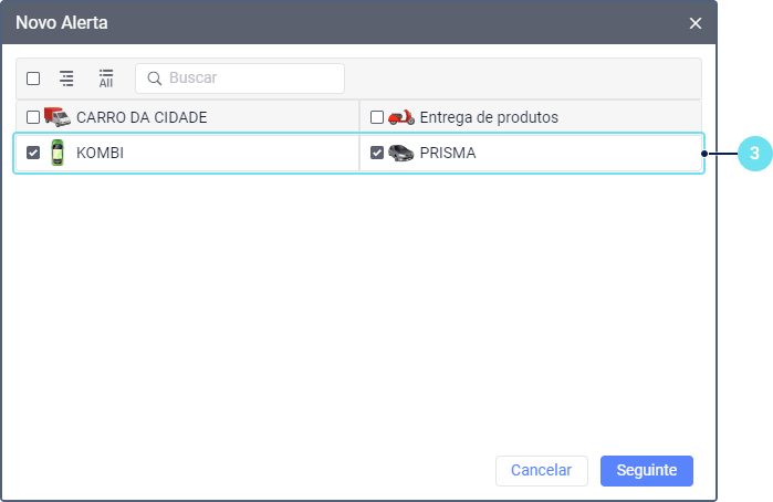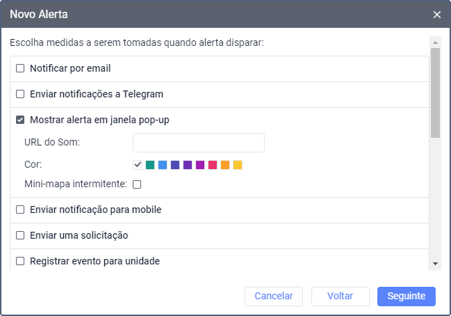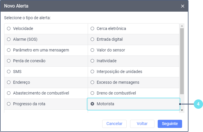 Selecione o tipo de alerta.