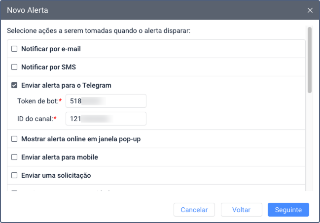 Esta ação permite enviar alertas para o mensageiro Telegram.