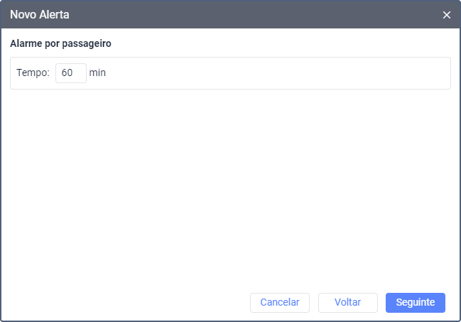 Um alerta desse tipo é acionado se algum passageiro do recurso selecionado não desceu do veículo (ou seja, não foi separado da unidade) dentro do tempo limite especificado. O tempo de espera é contado a partir do momento em que o passageiro é vínculado à unidade.