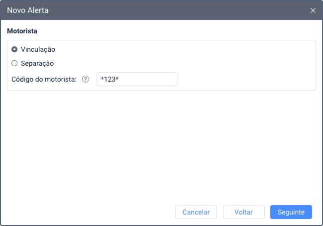 Os alertas desse tipo permitem monitorar quando os motoristas são vinculados ou separados da unidade.