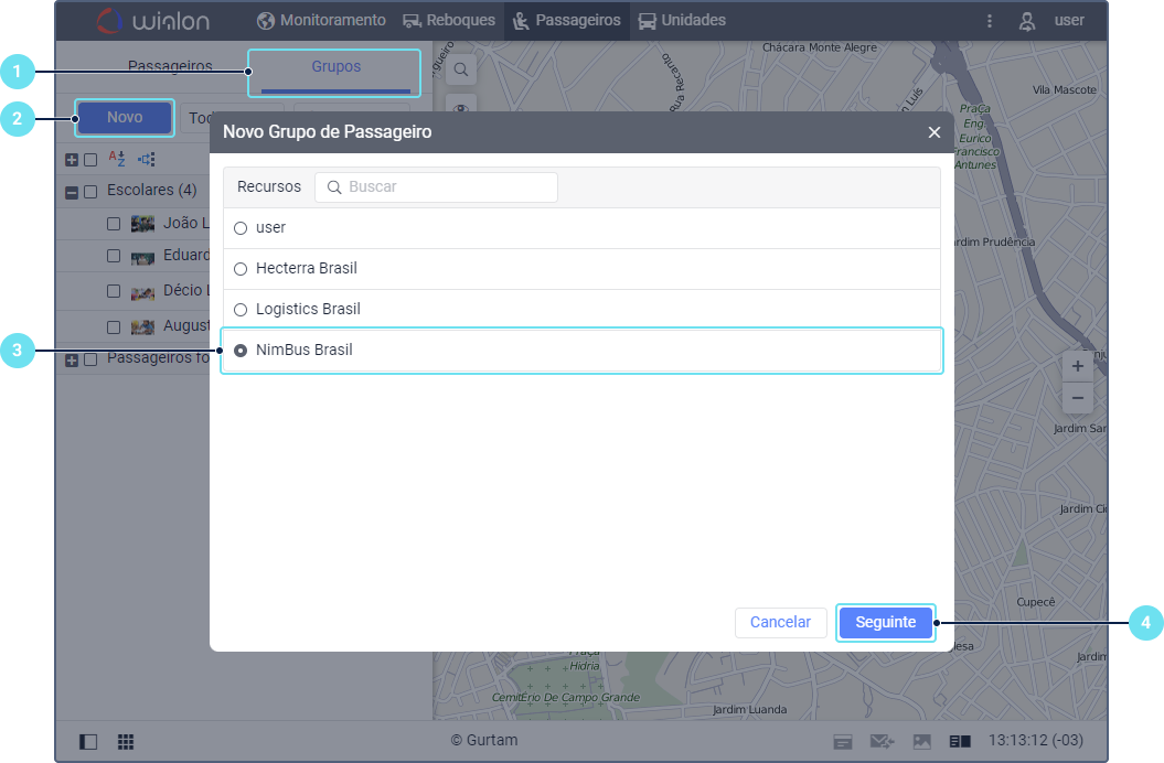 Selecione o recurso no qual deseja criar um grupo de passageiros.