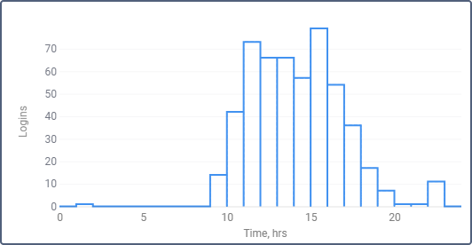 O gráfico Logins/horas mostra a frequência dos logins do usuário no sistema em diferentes horários:
