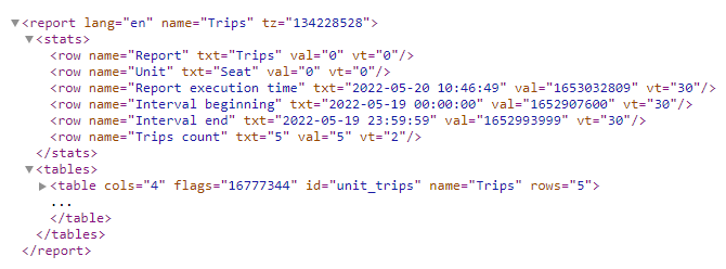 Ao selecionar o formato XML, o relatório será salvo como um arquivo de texto com dados estruturados. Um arquivo desse formato pode ser usado para sistemas de terceiros.