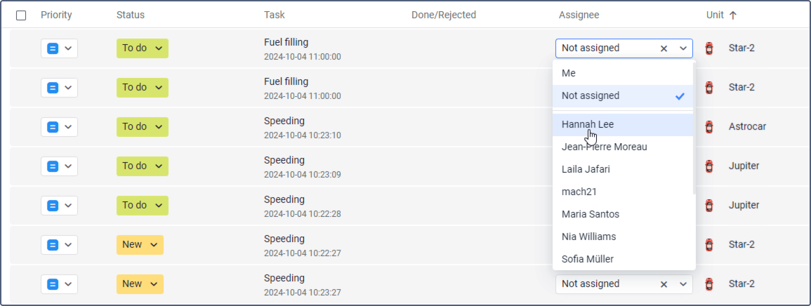 Para desatribuir um funcionário de várias atividades de uma só vez, siga os passos 1-3 das instruções anteriores, selecione Não atribuído na janela que se abre e clique em OK.