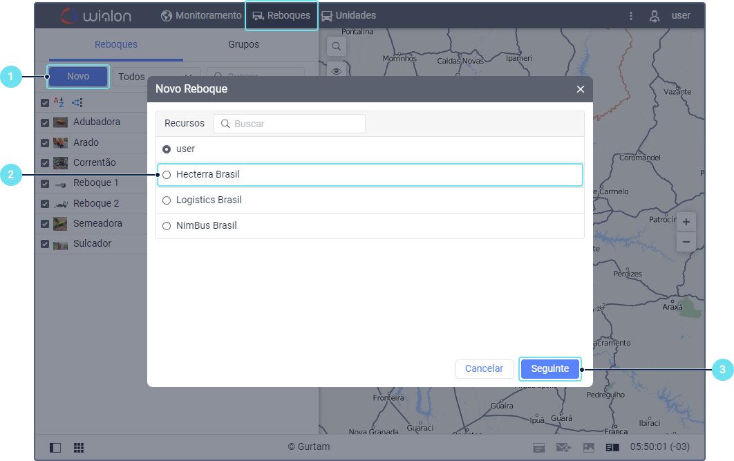 Selecione o recurso no qual deseja criar um reboque caso tenha mais de um recurso disponível.