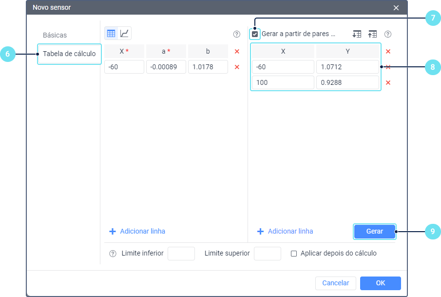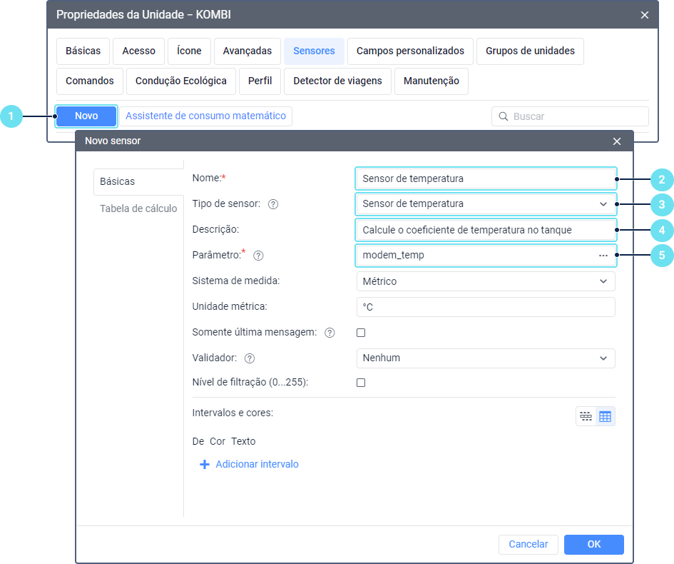 Após calcular os valores, deve-se criar o sensor de coeficiente de temperatura. Para isso, siga as etapas abaixo.