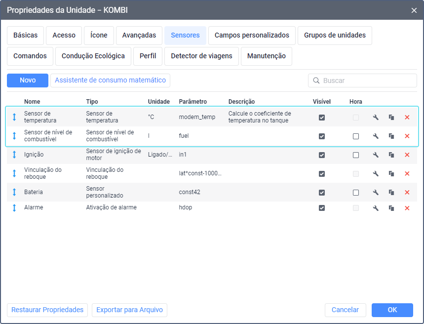 O coeficiente de temperatura influencia apenas os cálculos realizados de acordo com o sensor de nível de combustível.