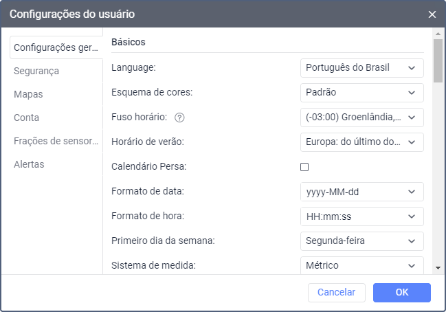 Nas configurações do usuário é possível alterar alguns parâmetros do sistema e obter informações gerais sobre sua conta (plano de fauramento, saldo, serviços etc.).