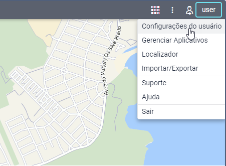 Para abrir as configurações do usuário, clique no nome de usuário no painel superior e selecione o item de menu com o mesmo nome.