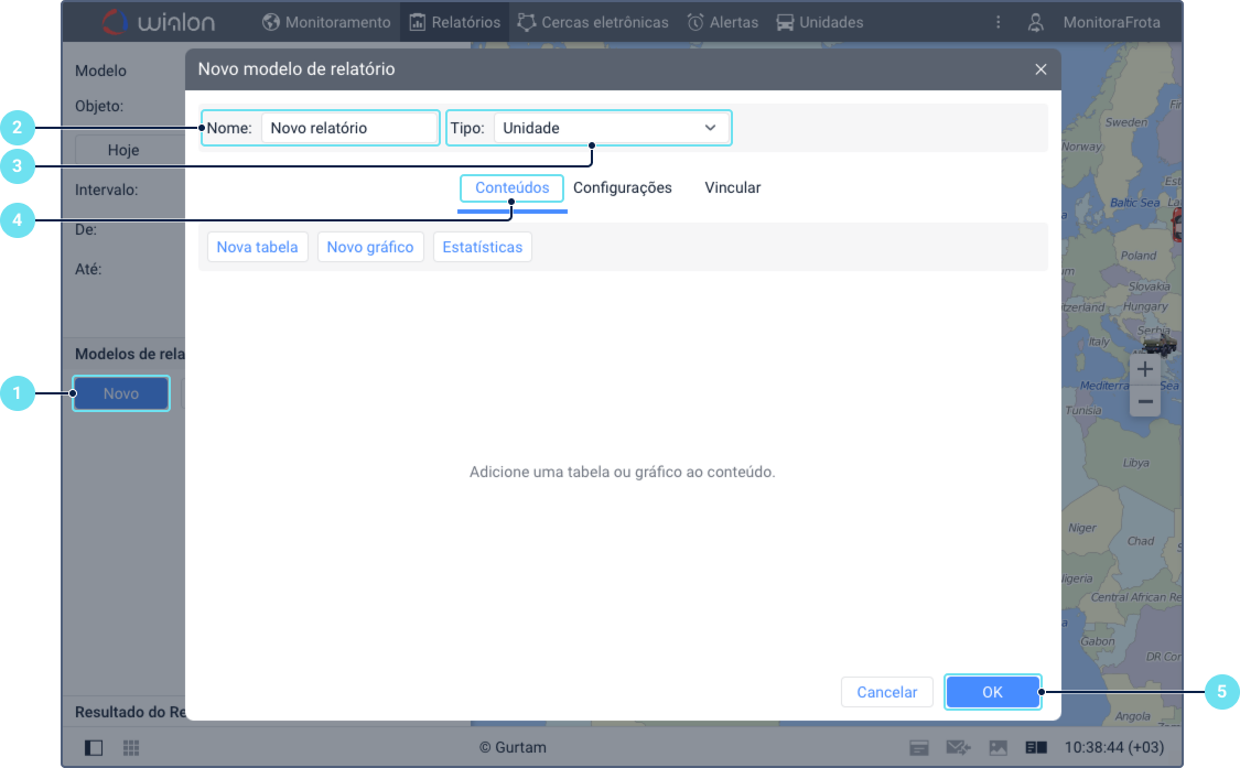 - Adicione tabelas e/ou gráficos na aba Conteúdo.