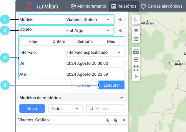 Os relatórios no Wialon podem ser executados usando modelos criados anteriormente. O modelo contém informações sobre as tabelas e os gráficos que podem ser incluídos no relatório, bem como suas configurações.