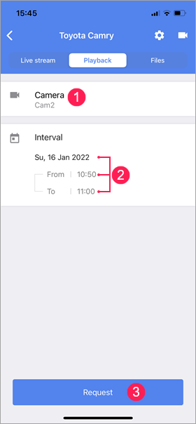 - Especifique o intervalo da reprodução. Para isso, selecione a data, toque no início e no fim do intervalo e especifique o horário desejado. Ao especificar o intervalo, considere o seguinte: