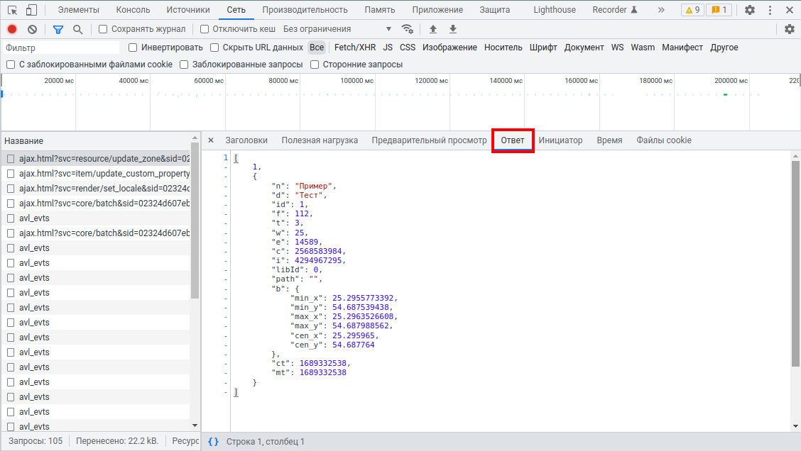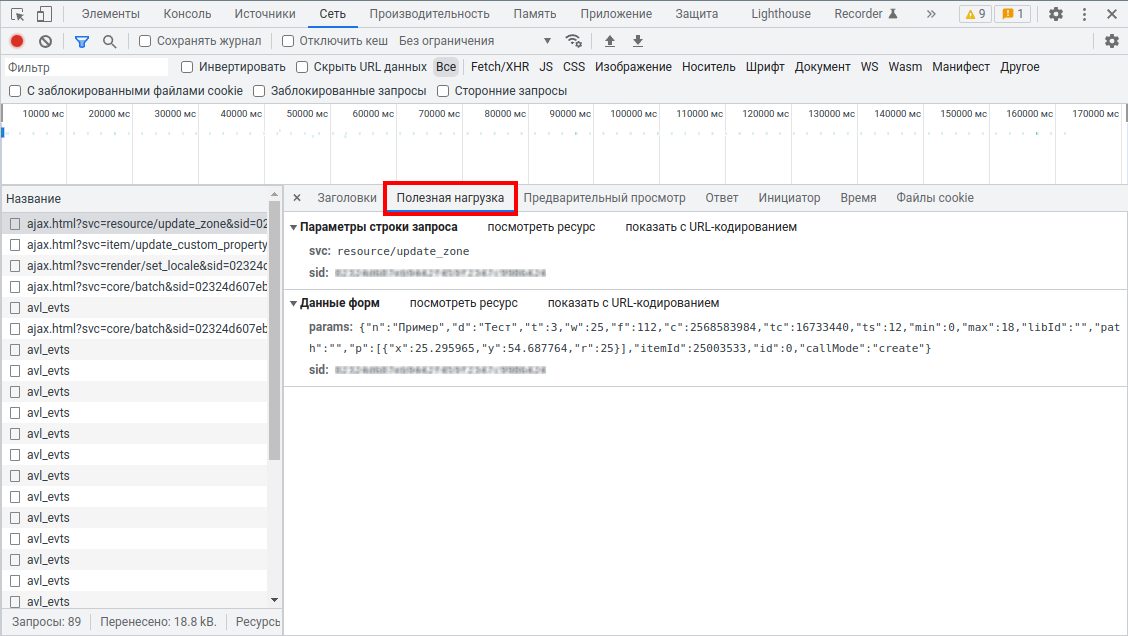 В начале изучения SDK часто возникает необходимость понять, какой API-запрос отправляется на сервер при совершении того или иного действия в интерфейсе Wialon. Это можно легко отследить, используя встроенные инструменты браузера для мониторинга сетевых запросов.