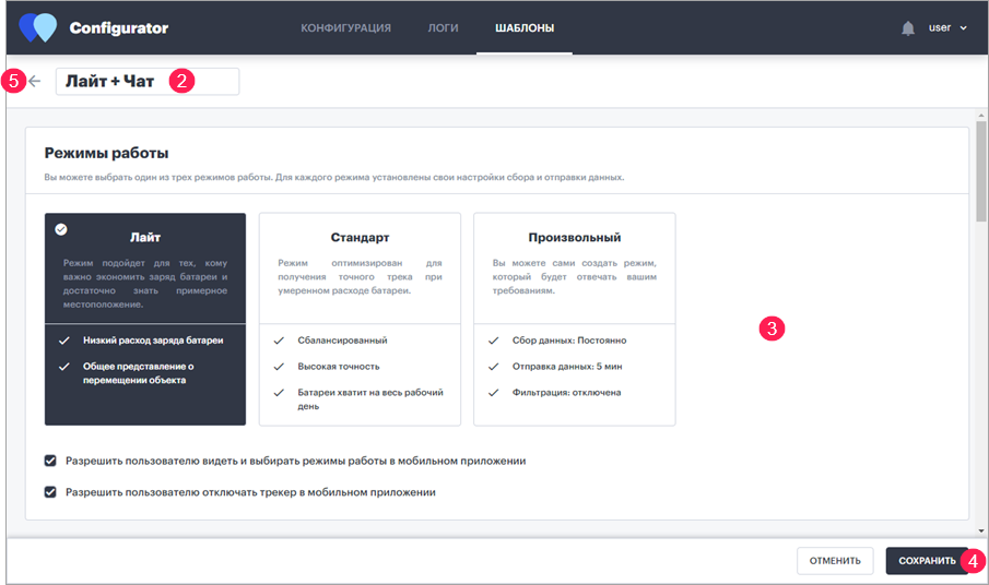 Нажмите на Сохранить для сохранения шаблона. Чтобы вернуть настройки шаблона по умолчанию, нажмите Отмена.