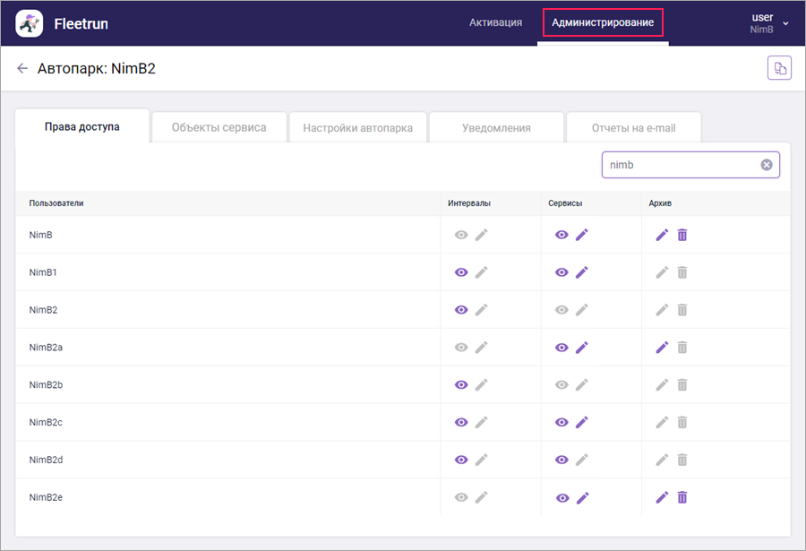 Администратором автопарка является пользователь, для которого он создан, а также все пользователи, расположенные выше него по вертикальной иерархии. Вручную дать пользователю права на администрирование автопарка нельзя.