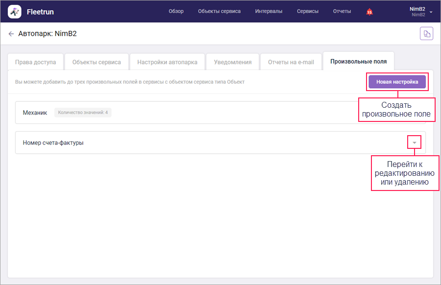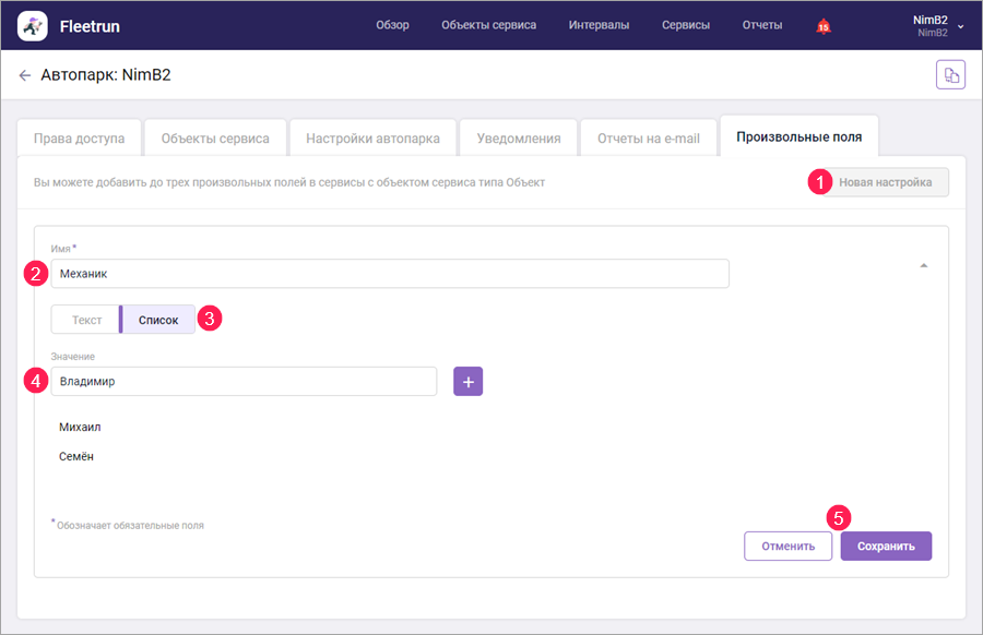 После сохранения произвольного поля, оно добавляется во все сервисы объектов. В интерфейсе пользователя произвольные поля необязательны для заполнения.