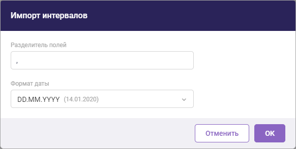 Чтобы импортировать интервалы, следуйте описанным ниже шагам.