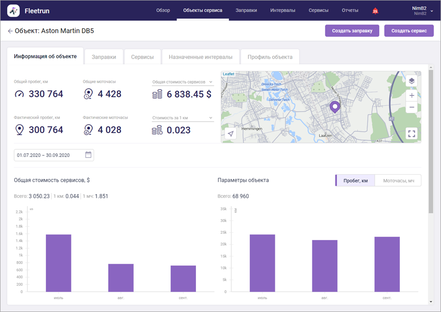 | Общая стоимость | Суммарная стоимость всех сервисов объекта и топлива, указанного в его заправках. Значение рассчитывается путем сложения общей стоимости сервисов и общей стоимости топлива. |