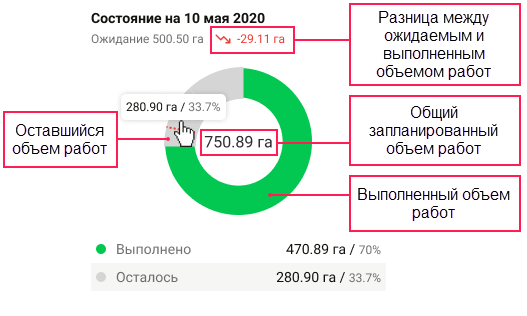 | Число в центре графика | Общая площадь полей, которые должны быть обработаны в рамках кампании. |