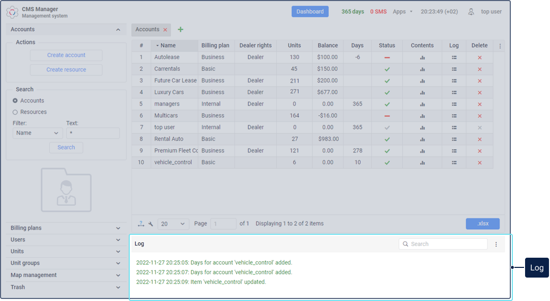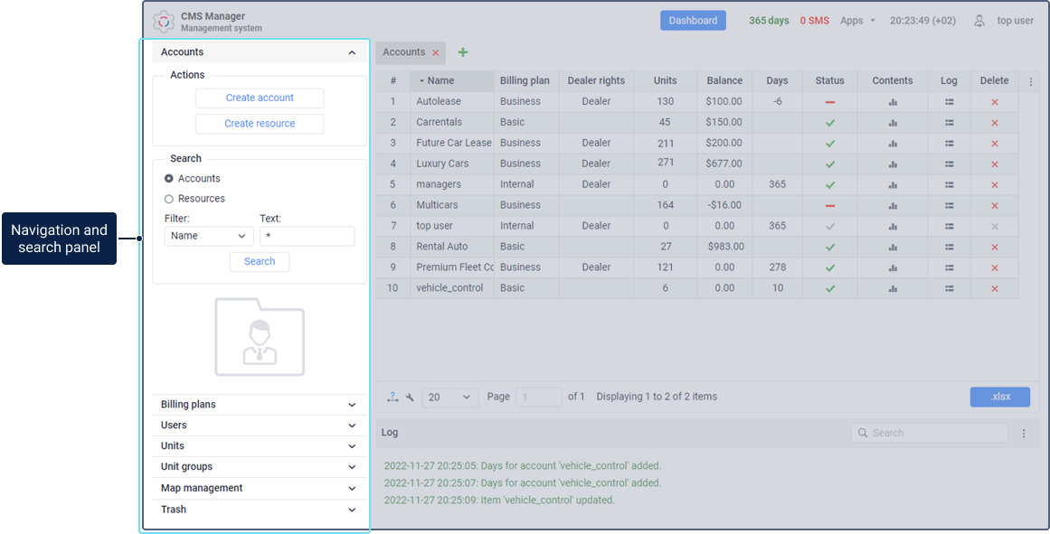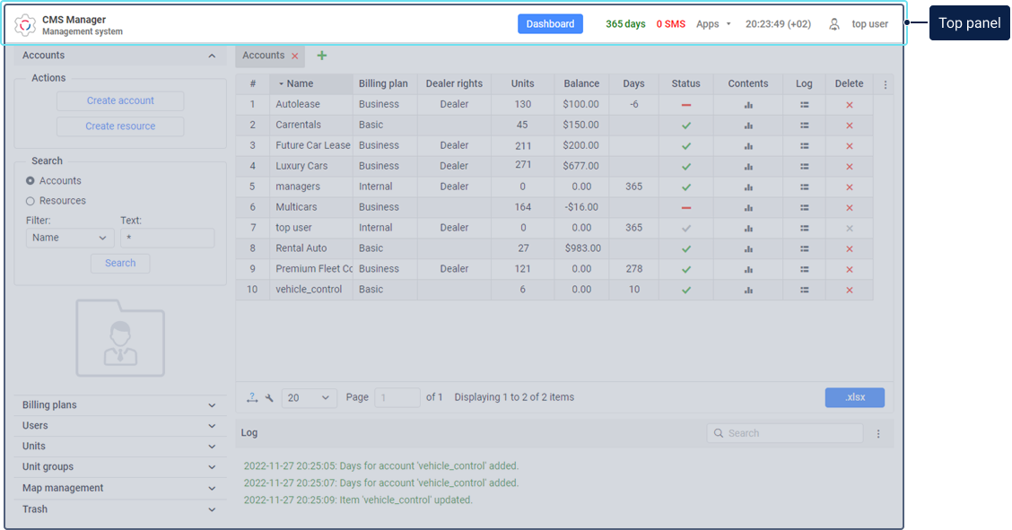В интерфейсе системы управления можно выделить следующие основные элементы: