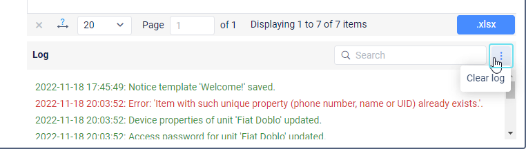 Чтобы очистить журнал от записей, нажмите на иконку настроек