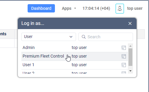 В CMS Manager можно войти в систему от имени другого (подчиненного) пользователя. Для этого на него необходимо иметь Полный доступ.