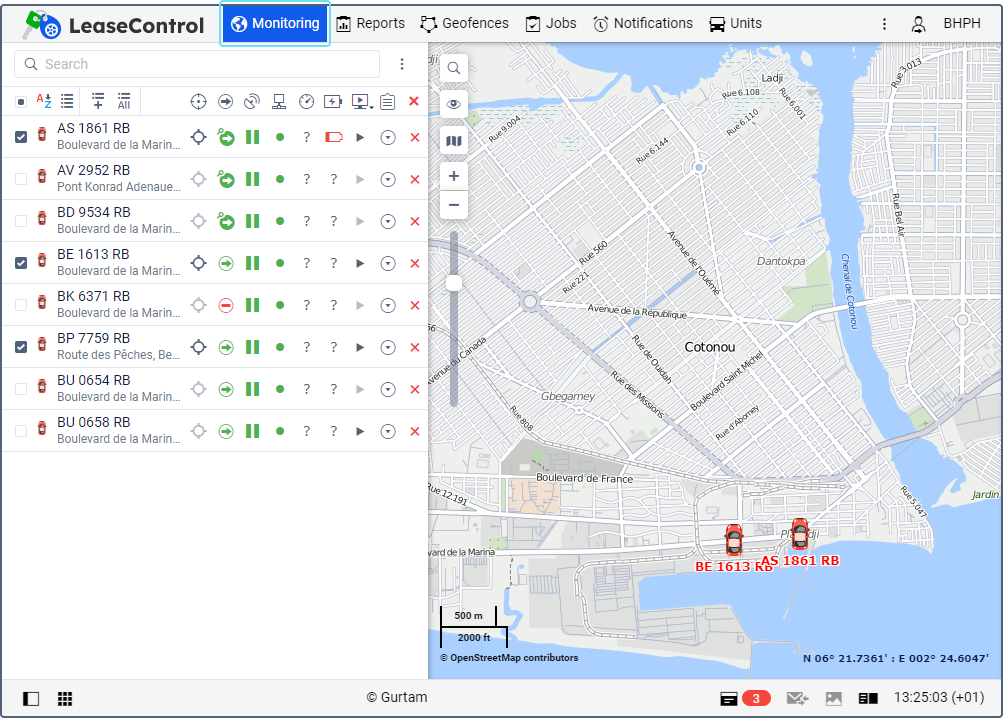 На вкладке Мониторинг вы можете видеть рабочий список объектов и карту, на которой можно отслеживать их передвижение в режиме реального времени. Здесь доступны основные функции, связанные со слежением за объектами и их параметрами.