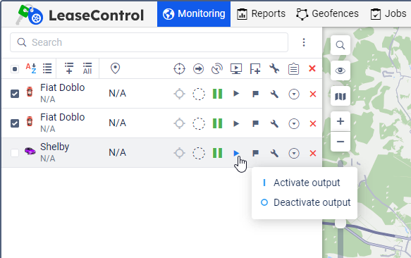 - вручную со вкладки Мониторинг, в том числе и отправка команды сразу целой группе объектов;