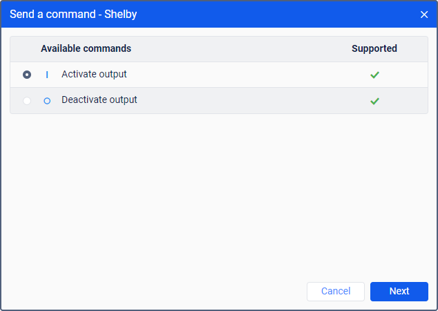 . - Выберите нужные объекты и нажмите Далее. Этот шаг не нужен, если команда отправляется одному объекту.