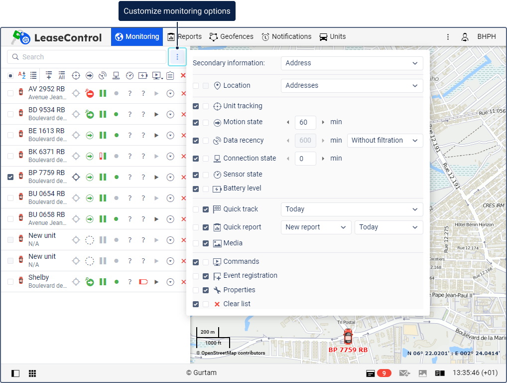 С помощью этой опции вы можете настроить фильтрацию объектов по актуальности данных на вкладке Мониторинг. Для этого в настройках опций мониторинга (иконка