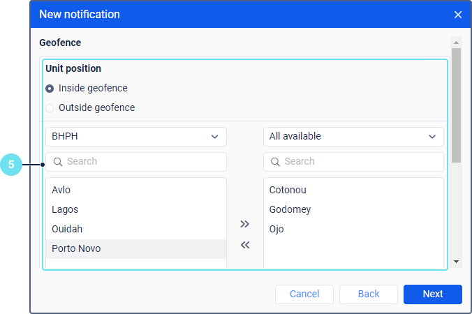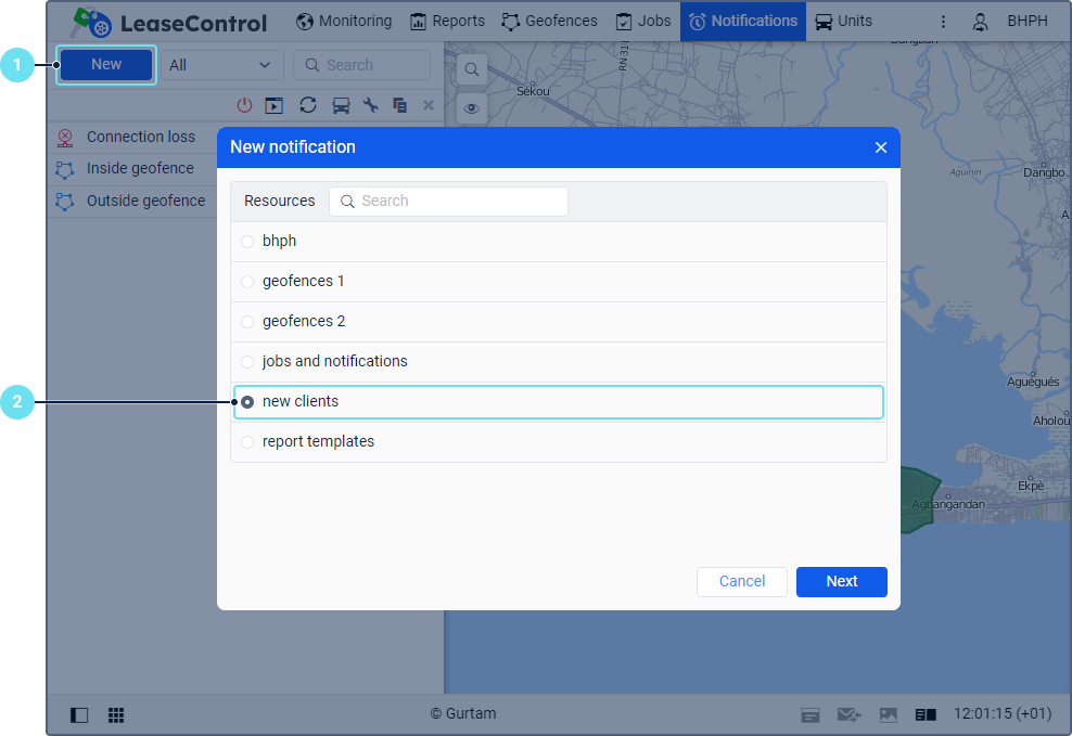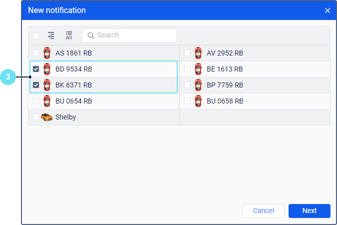 - Выберите объект или объекты, для которых необходимо создать уведомление. Объекты выбираются так же, как и при создании заданий.