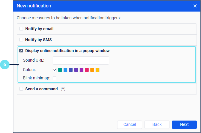 - Установите параметры, которые зависят от выбранного типа уведомления и подробно описаны на странице Типы уведомлений.
