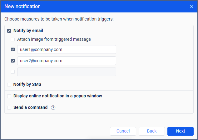 Этот способ действия позволяет настроить отправку уведомлений на электронную почту. Для этого поставьте галочку слева от поля и введите адрес, на который должны отправляться уведомления. После каждого ввода автоматически добавляется новое поле. Чтобы отменить отправку уведомления на какой-либо добавленный адрес, снимите галочку слева от него.