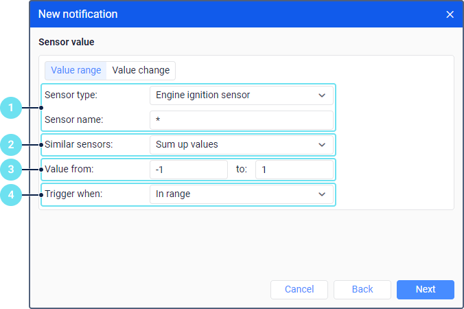 - Диапазон значений — позволяет указать диапазон значений датчика, чтобы контролировать, попадают ли в него полученные значения;
