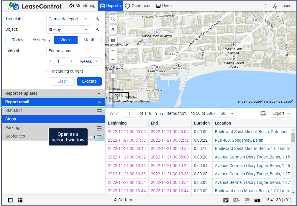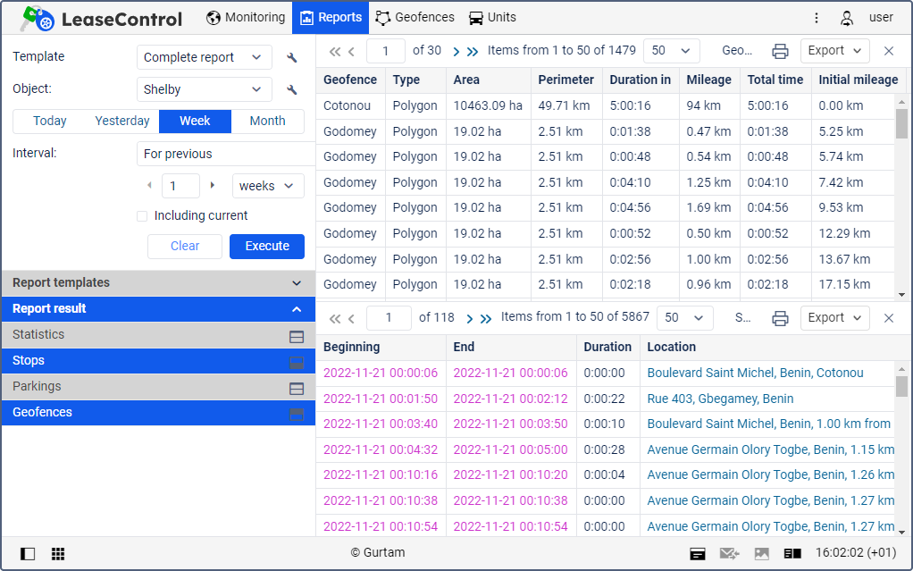 Если за указанный интервал отчета есть требуемые данные об объекте, то после нажатия на Выполнить под секцией Шаблоны отчетов показывается еще одна — Результат отчета.