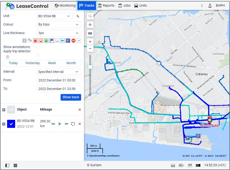 Можно нанести на карту любое количество треков за разные промежутки времени, причем как по разным объектам, так и для одного и того же объекта. Чтобы треки не сливались друг с другом, можно задавать для их отображения разные цвета, причем цвет может быть разным даже внутри одного трека — в зависимости от скорости движения, показаний датчика и т. п.